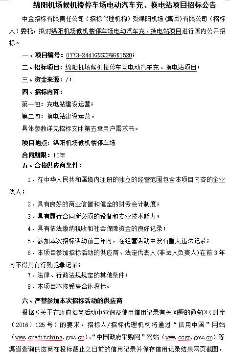 綿陽機(jī)場候機(jī)樓停車場電動(dòng)汽車充、換電站項(xiàng)目招標(biāo)公告
